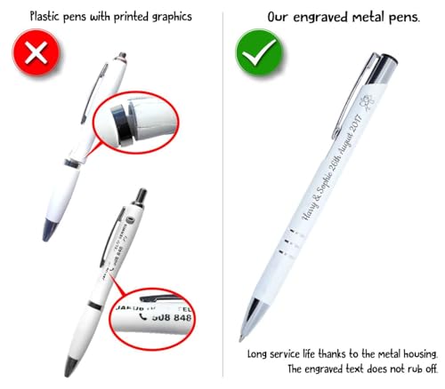 50 penne a sfera in metallo personalizzate con incisione – per diverse circostanze – regali di nozze per ospiti compleanno comunione battesimo – 56 simboli grafici a scelta – colore bianco