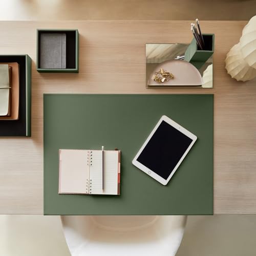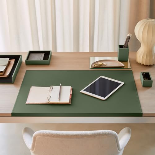 Eglooh – Calliope – Sottomano Scrivania Ufficio in Cuoio Verde cm 70×50 – Struttura in Acciaio con Profilo a L, Raffinate Cuciture Artigianali e Fondo Antiscivolo – Made in Italy