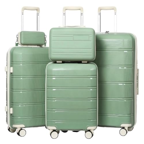EPBRJMD Set di 5 valigie leggere, rigide e con rotelle, da portare a mano e da stiva, con lucchetto TSA, set di valigie da viaggio.(Green 5 piece set)