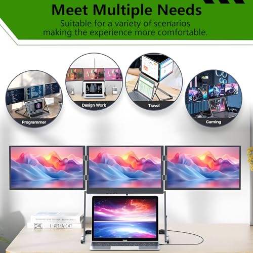 CARATTERISTICHE: 【ESPANSIONE SIMULTANEA A TRE SCHERMI】Estenditore per monitor per laptop a triplo schermo Trasforma all’istante il tuo laptop in una potente workstation a tre schermi! Il display IPS Full HD da 15,6 pollici supporta la visualizzazione indipendente o sincronizzata, semplificando il multitasking.