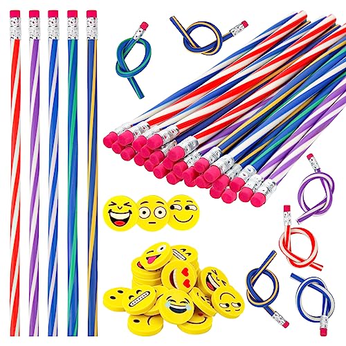 Gudotra 60 pezzi Gadget Compleanno Bambini, 30 Matite Flessibili con 30 Gomme Espressivo Regalini Festa, Fine Anno Scolastico