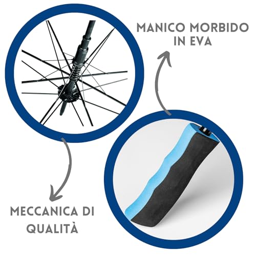 [ CARATTERISTICHE OMBRELLI ] I nostri ombrelli personalizzati sono resistenti e duraturi al tempo, diametro da 125 cm, altezza da 93 cm ed apertura automatica con manico in EVA morbido ed antiscivolo, inoltre la struttura in fibra di vetro garantisce una lunga durata e resistenza al vento.