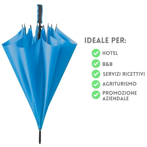 [ STAMPA INCLUSA ] La personalizzazione degli ombrelli include la stampa del vostro logo o messaggio promozionale, assicurando una finitura di alta qualità. Ogni ombrello è stampato con cura su ben 2 lati, per riflettere al meglio l’immagine della vostra struttura ricettiva.