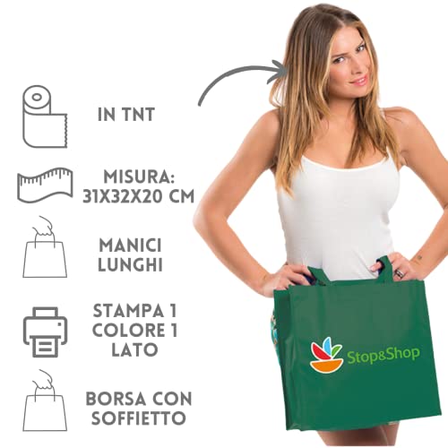Hole Gadget ® | Stock 20 Shopper Personalizzate Pubblicitarie, Borse Gadget Aziendali Personalizzate in TNT con Logo, Buste Shopping Bag per Omaggi a Clienti PG151