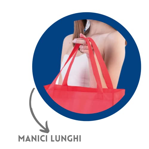 CARATTERISTICHE: [ ECOLOGICHE ] Le nostre shopping bag sono realizzate in tessuto non tessuto (TNT) resistente, un materiale ecologico che riduce l’impatto ambientale rispetto alle borse di plastica monouso.