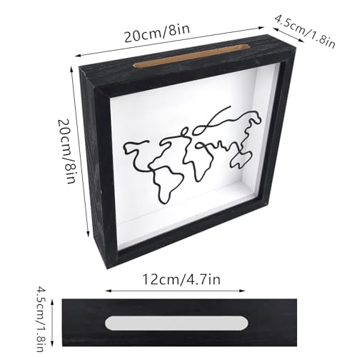 Jastown 20 * 20cm Adventure Archive Box,salvadanaio Viaggio con Slot,Scatola ricordi Viaggio,scatole Legno,Scatola di Raccolta di Viaggi, Scatola di Ombra del Biglietto,Memory Box Frame (Nero)