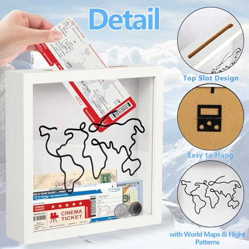 CARATTERISTICHE: 🖼️ Scatola ombra per biglietti con fessura: il battito del cuore dell’avventura si trova in ogni souvenir, biglietto e cartolina. Il nostro Adventure Archive Box, disponibile nelle misure Medium (8×8 pollici) e Large (12×12 pollici), li riporta in vita. Appendilo al muro o posizionalo su un tavolo per ravvivare cassetti dimenticati.