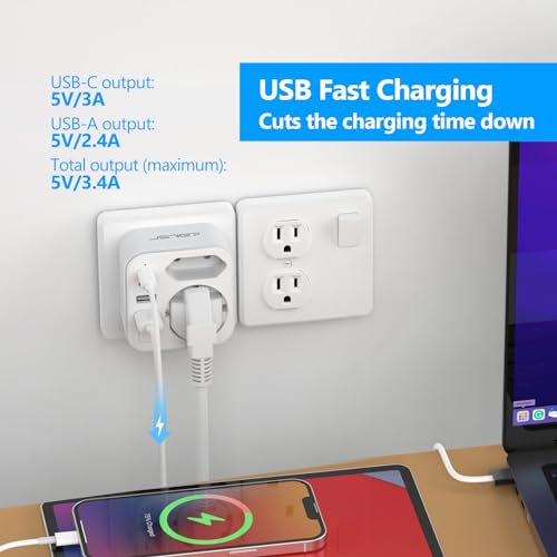 * JSVER Adattatore da Viaggio USA è progettato per essere sicuro e affidabile, con protezione intelligente che regola automaticamente la corrente per proteggere i tuoi dispositivi elettronici da sovraccarichi e da surriscaldamento.