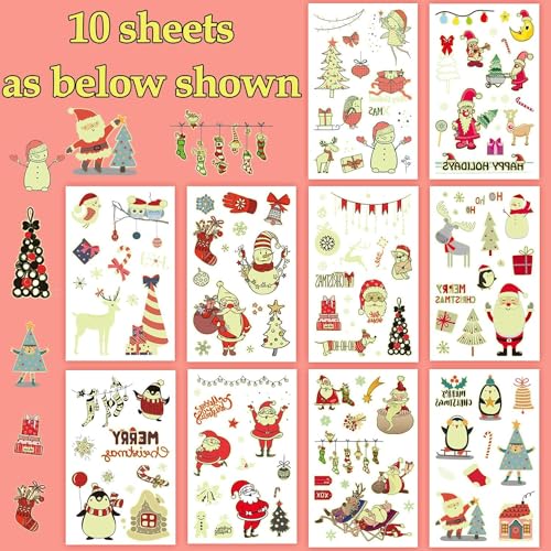 Leesgel Regalo Natale Bambini, 10 Fogli Tatuaggi Luminosi di Natale per Bambini, Accessorio per Sacchetti Regalo Natale, Regali di Natale e Fine Festa, Gadget Natalizi