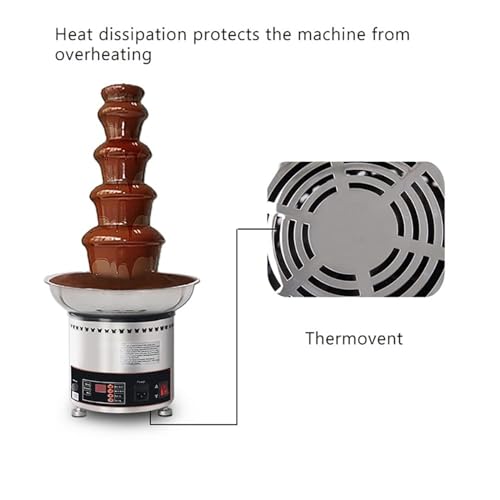 La macchina per fontana di cioccolato a 5 livelli, in acciaio inossidabile, offerta commerciale presenta elevate capacità produttive per la sua categoria, garantendo la produzione di un quantitativo importante di prodotti alquanto raffinati. Grazie alle cinque camere di confezionamento, essa è stata progettata per coprire tutti i requisiti della creazione artigianale. La sua tecnologia riscaldata regolabile da 0 °C a 150 °C permette una gamma ampia di opzioni per adattarsi alla necessità della ricetta richiesta, sostenendo inoltre il riscaldamento della pasta da cioccolato, dello yogurt e del formaggio. Sebbene si tratti di un modello di grandi dimensioni e di costo superiore alla media, presenta una finitura ben lavorata ed una struttura solida che ne rispecchiano l’indubbio valore. Le recensioni del prodotto confermano che rappresenta una soluzione eletta per professionisti che esercitano attività legate all’arte dell’impastatura. Per coloro che lavorano quotidianamente con la confezione e il packaging dei loro prodotti, la presente macchina è molto utilizzata grazie ai suoi pregi tecnici. In definitiva, si tratta di una soluzione affidabile ed adatta agli obiettivi industriali degli impastatori che richiedono elevata produzione con risultati qualitativi elevatissimi.