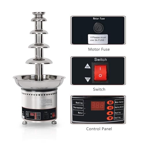 ▶MATERIALE DI ALTA QUALITÀ: Fontana di cioccolato macchina ad alta potenza del motore con 304 torre in acciaio inox e ciotola di riscaldamento rendere la salsa formare un effetto fontana in modo rapido, fontana indipendente interruttore e interruttore di riscaldamento mantenere il cioccolato fuso e che scorre in modo da poter ottenere coerente immersione salsa ogni volta.