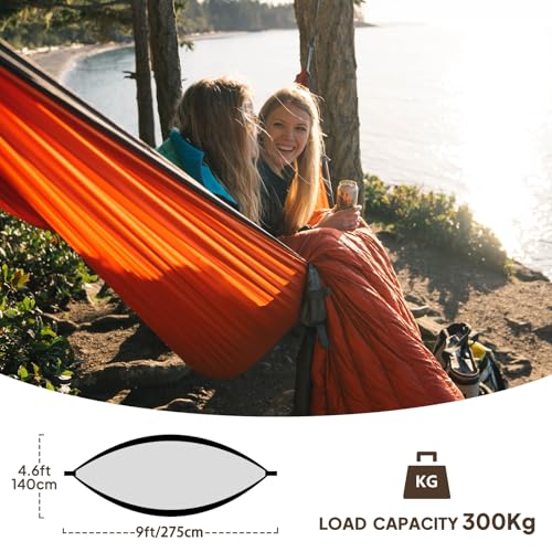 NTUREFUN Amaca da Campeggio da Viaggio Ultraleggera | Capacità di Carico 300kg,(275 x140 cm) Traspirante,Nylon da Paracadute ad Asciugatura Rapida | 2 x Moschettoni, 2 x Corde in Nylon Incluse