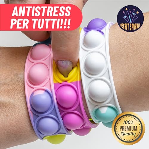 CARATTERISTICHE: Set di Gadget Bambini Anti Stress: Ogni braccialetto Regalo funge da anti stress, con un design a bolle che fornisce stimolazione sensoriale e aiuta a ridurre lo stress e l’ansia.