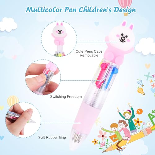 SULOLI 30 Pezzi Penne Multicolore Bambini,Penne a Sfera a 4 Colori,Animali Kawaii Gadget Regalo Fine Festa Compleanno per Bambini
