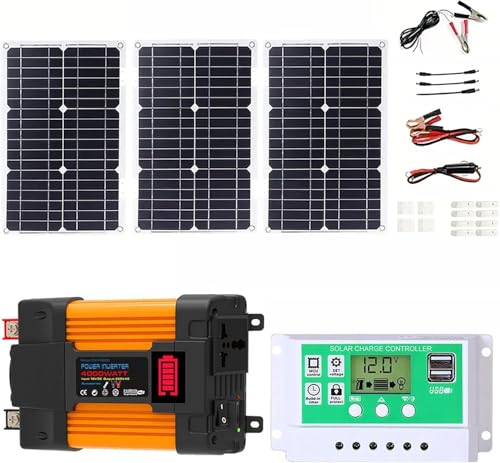 TPTAWF 6000 W, 110 V, kit completo di inverter solare da 4000 W/6000 W, include un controller da 50 A e un pannello solare da 75 W, adatto per la casa e l’esterno