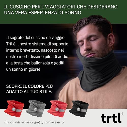 Trtl Travel Pillow Rosso: Il Cuscino da Viaggio Salvaspazio Ideale per Viaggiare Comodamente in Aereo, Auto e Autobus