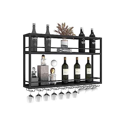 UQACHG Porta Bicchieri da Vino A Parete, Portabottiglie in Metallo A 2 Livelli con Corrimano, Cornice Decorativa in Ferro Battuto Europeo