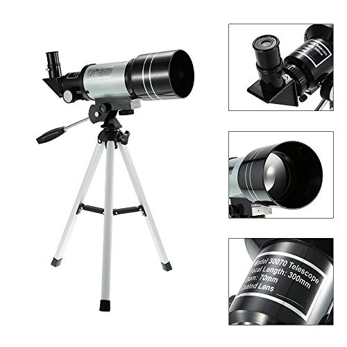 CARATTERISTICHE: Telescopio astronomico rifrattivo con apertura di 70 mm e lunghezza focale di 300 mm.