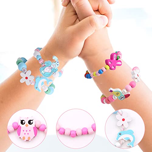 ❤【Decorazioni Perfette】Le bracciale in legno con perline con graziose cartone animato decorazioni, bello e attraente, facile da abbinare a vestiti diversi, renderà il tuo bambina più bello adorabile e alla moda.