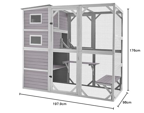Aivituvin Catio – Grande casetta per gatti in legno con 4 ripiani, grande gabbia per interni, con riparo per gatti e conigli, tetto resistente alle intemperie