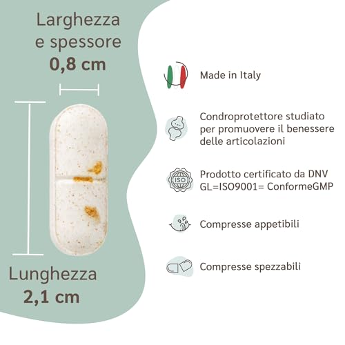 CARATTERISTICHE: Lubrifica le cartilagini: Le nostre compresse articolazioni cani aiutano a lubrificare le cartilagini del vostro amico a quattro zampe. L’uso regolare può migliorare la mobilità e le articolazioni del cane, sostenendo il benessere delle articolazioni cane