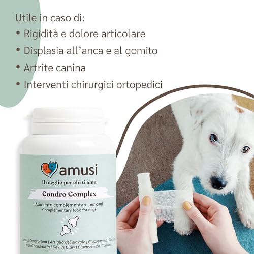 amusi Compresse Articolazioni Cane – Compresse Antinfiammatorie con Condroitina e Glucosamina, Lubrificano Le Cartilagini, Supportano Mobilità e Articolazioni, Contro Displasia e Artrite (90 CPR)
