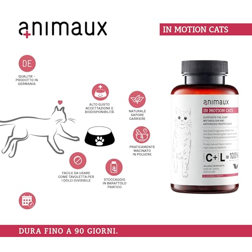 Animaux In Motion Cats è un prodotto di alta qualità, prodotto in Italia, e non contiene nessun tipo di sostanza chimica o artificiale. È sicuro per i gatti e non ha effetti collaterali.