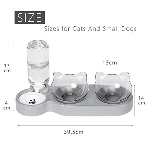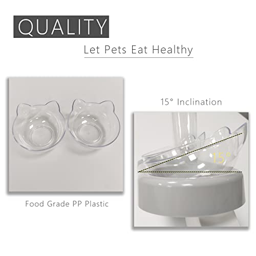 Ciotole per Gatti 3 in 1,15° Inclinata Doppio Gatto Ciotola con Supporto Rialzato,Ciotola per Cibo e Acqua Ciotola per Animali Rimovibile per Gatti e Cani di Piccola Taglia