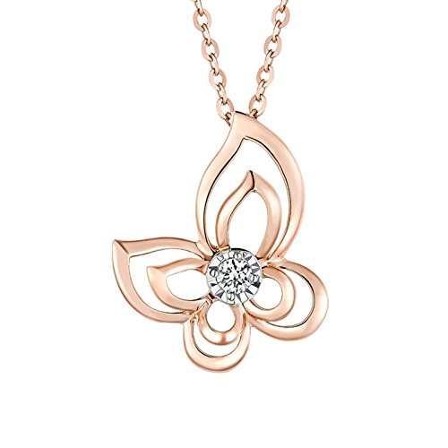 Collana oro rosa 18 carati (AU750) Ciondolo Farfalla in diamante naturale 0.05 ct, 1.1 g, 1pc – knsam Serie Amore Eterno