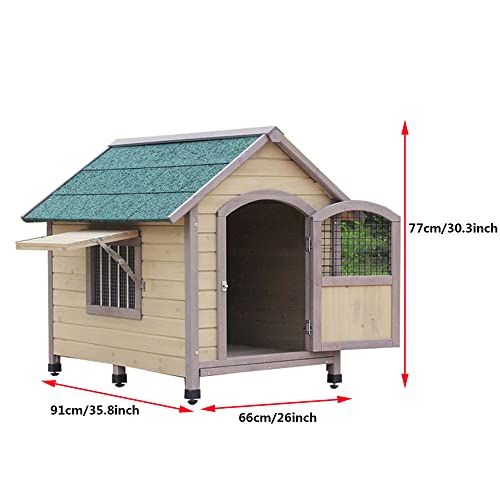 Cuccia per cani con porta, cuccia in legno impermeabile per interni ed esterni con finestre ombreggianti, riparo per animali domestici di piccola e media taglia, cani e gatti, 35,8