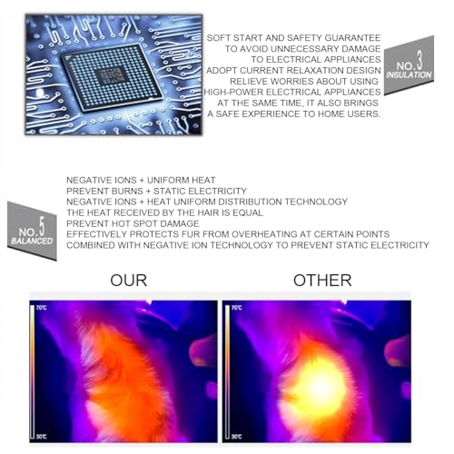 CARATTERISTICHE: Asciugacapelli per animali domestici: il set di supporto per asciugacapelli per animali domestici utilizza un motore da 2200 W, che consente di risparmiare energia fornendo allo stesso tempo una forte intensità di asciugatura. Basso rumore, non spaventerà i tuoi adorabili animali domestici durante il funzionamento