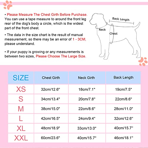 CARATTERISTICHE: Si prega di non scegliere la taglia direttamente in base alla taglia che indossa solitamente il vostro animale domestico. Si prega di misurare il petto e il collo del cane, quindi fare riferimento alla nostra tabella delle taglie prima dell’acquisto. Man mano che il tuo animale domestico cresce, ti consigliamo di scegliere una taglia più grande.