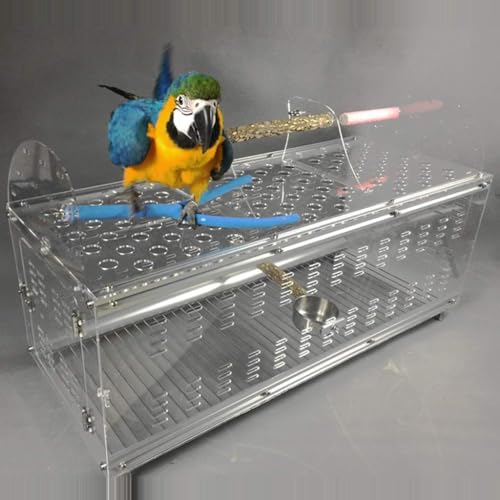 Alcune caratteristiche comuni di queste gabbie includono una vetro custodia nettabile per permettere una visuale chiara del pappagallo che ospita e ventilazione adeguata per permettere un clima salubri all’interno grazie a un ventilazione naturale rispetto al cielo o gestione o foro per le2 stadi di ventilazione del grano.