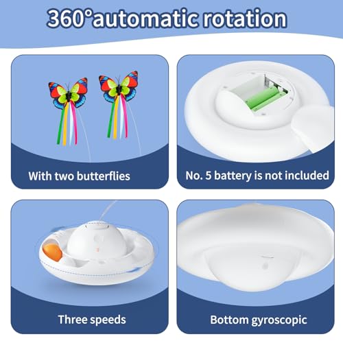 Gmiigu giochi per gatti, giochi gatti interattivi, giochi gatto elettrico, gatto giocattolo con 2 farfalle e 2 palline, gioco gatto 3-velocità per gatti, gattini in casa, bianco (senza batteria)