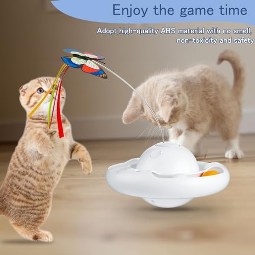 Gmiigu giochi per gatti, giochi gatti interattivi, giochi gatto elettrico, gatto giocattolo con 2 farfalle e 2 palline, gioco gatto 3-velocità per gatti, gattini in casa, bianco (senza batteria)