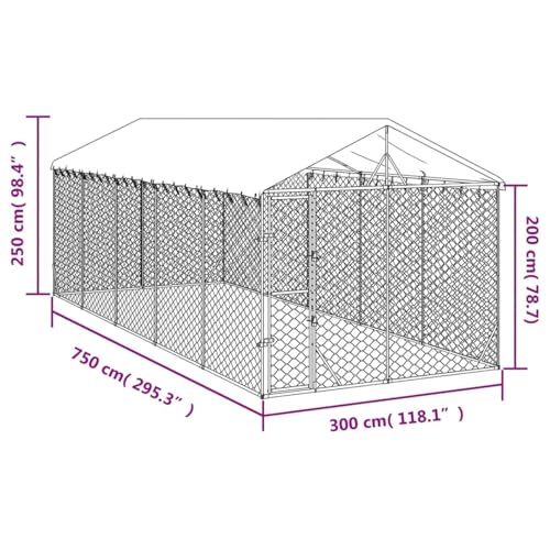 IKAYAA Recinto per cani da esterno Kennel per Cani da Esterno Recinto per Animali Gabbia Cani con Copertura-3 x 7.5 x 2.5 m