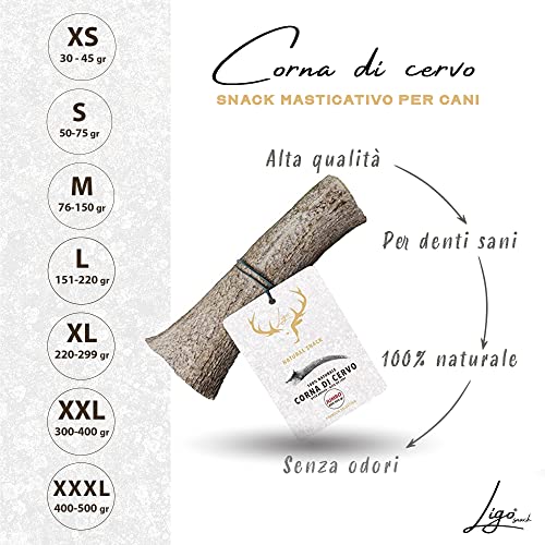 Ligo Corna di Cervo per Cani 100% Naturale Masticare Giocattolo Osso. Taglia S | 50-79 g