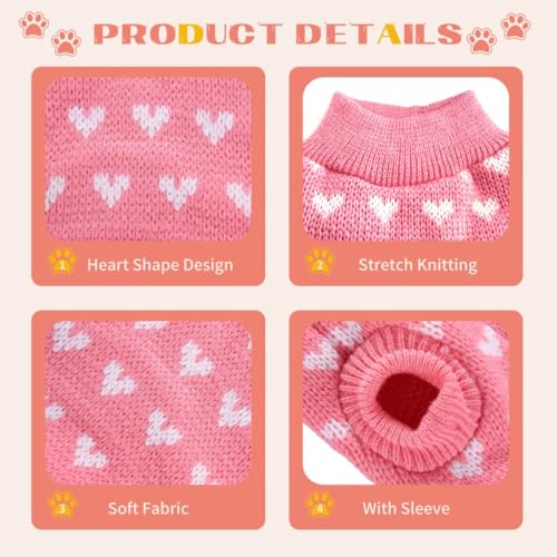 Maglione Cane Cuore Maglioncino Cane San Valentino Caldo Maglioncino Cane Taglia Piccola Maglione Gatto Rosa Maglioncino per Cani di Taglia Piccola e Media S