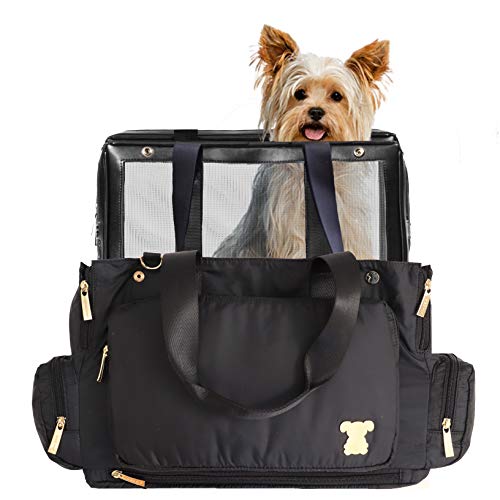 Il trasportino per animali domestici include la borsa nera “Shell” Tote Bag e il trasportino per animali domestici approvato dalla compagnia aerea “Base”
