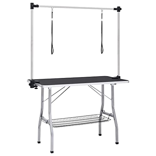Nero e Argento Acciaio Inossidabile, Acciaio, truciolato, Alluminio Animali Articoli per Animali Articoli per toelettatura Animali Tavolo da toelettatura Regolabile per Cani con 2 Anelli e Cestino