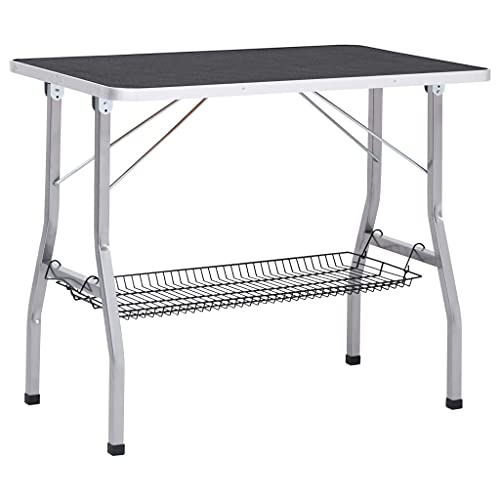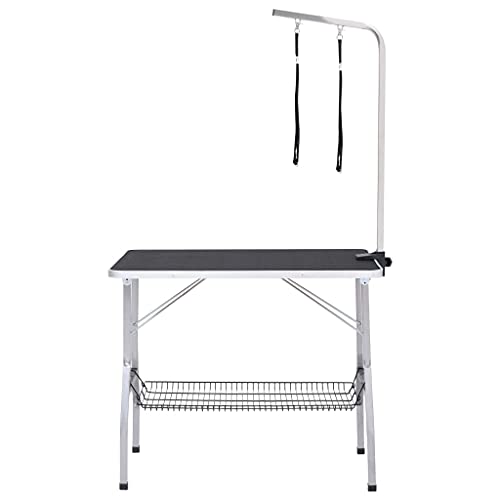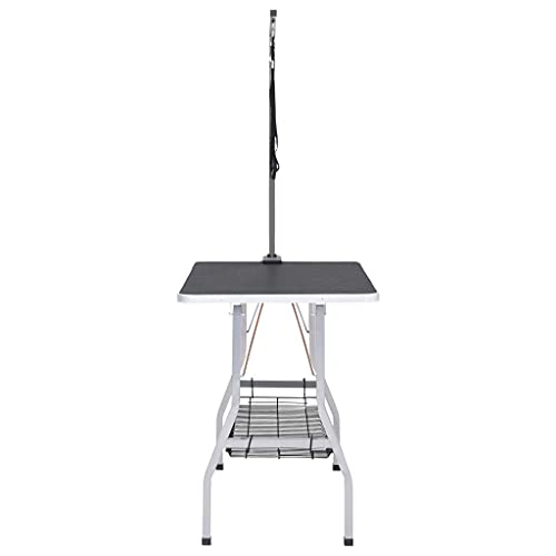 Nero e Argento Acciaio Inossidabile, Acciaio, truciolato, Alluminio Animali Articoli per Animali Articoli per toelettatura Animali Tavolo da toelettatura Regolabile per Cani con 2 Anelli e Cestino