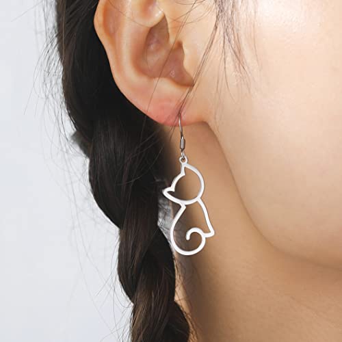 Orecchini da donna a forma di gatto, in acciaio inox, con ciondolo a forma di gatto, con gancio, idea regalo per gli amanti degli animali domestici, Acciaio inossidabile, Nessuna pietra preziosa