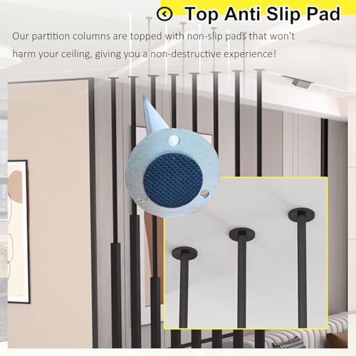 Piedini regolabili in altezza: la nostra colonna divisoria è dotata di piedini regolabili in altezza per ridurre al minimo gli errori di misurazione che possono causare la disinstallazione della colonna, intervallo regolabile di 2 cm (4/5″) e cuscinetti in plastica sulla parte superiore per evitare graffi al soffitto