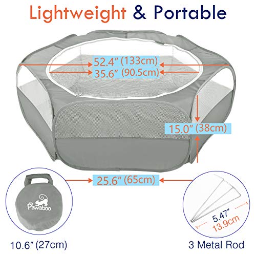 Pawaboo Recinto per Animali Domestici, Box per Animali Piccoli, Tenda per Gatti Cani Cuccioli, Portatile Gabbia, Recinzione in tessuto Oxford e a rete, Resistente e Pieghevole, Grigio