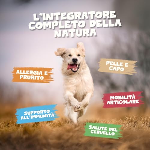 Ricco di Acidi Grassi Essenziali Omega 3 6 9 – La nostra formula contiene acidi grassi Omega-3, Omega-6 e Omega-9 derivati EPA e DHA, detti triplo omega, che contribuiscono a mantenere morbido il pelo e a favorire la salute complessiva dell’animale