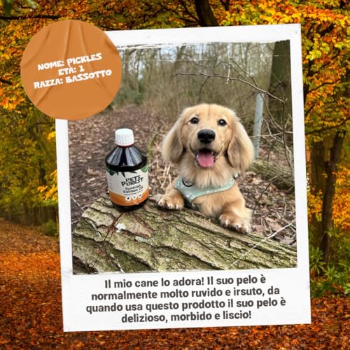 In conclusione, il Pet Purest Olio di Salmone Scozzese è un prodotto alimentare integratore di alta qualità e di facile assimilazione per cani, gatti e altri animali domestici. Grazie al suo alto contenuto di acidi grassi omega 3, 6 e 9, è particolarmente utile per il mantenimento della salute dei peli, del sistema immunitario, del prurito, delle articolazioni e del cervello dei nostri carini amici.