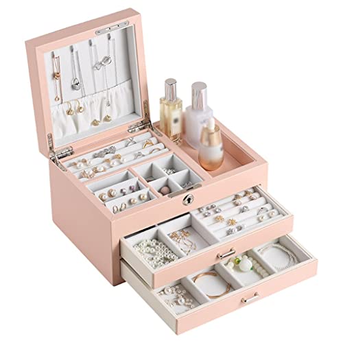 Portagioie europeo con chiusura a cassetto, grande capacità, per orecchini, anelli (D 28 x 19 x 14 cm)