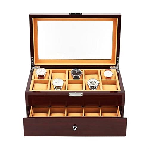 Scatola per orologi in legno di sandalo, con 20 scomparti, a doppio strato, stile retrò, con cassetto, per uomini, orologi, donne, idea regalo