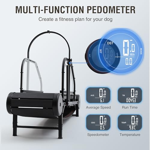 CARATTERISTICHE: 【 Non motore di alta qualità è più sicuro】 Il nostro design senza motore consente al cane di muoversi liberamente e fermarsi in qualsiasi momento se non vuole correre. I tapis roulant per cani hanno un telaio in acciaio spesso aggiornato, l’uso di catene di ferro sopra il telaio per fissare la posizione del cane, per evitare che il cane corra o perda equilibrio durante l’esercizio, molteplici misure protettive per rendere il cane più sicuro durante l’esercizio.