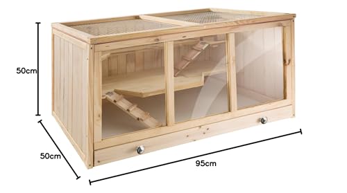 TecTake 403230 Gabbia per Roditori, Tre Piani, Legno di Pino, Casetta per Piccoli Animali Domestici, ca. 95x50x50 cm